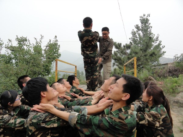 其中令人感觸最深的項目是畢業(yè)墻,又稱逃生墻,源于二戰(zhàn)時期水手合力爬上四米多高的甲板逃生的真實經(jīng)歷。一塊4.2米高的高墻,光滑、沒有任何工具,要求所有的隊員都翻越過去才算勝利。這是最后一個項目,它把團(tuán)隊精神發(fā)揮到淋漓盡致。大家采用“疊人墻”的方法,讓身強(qiáng)力壯的隊友作為底座,先由身手靈活的隊友踩在他們的肩膀,大家奮力將他們先托上高墻,然后他們在上面接應(yīng),其他隊友踩著底座隊友的肩膀,一個一個成功地翻越了高墻。整個過程歷時不過10分鐘,翻越高墻后,所有隊員都為自己和團(tuán)隊的精彩表現(xiàn)鼓掌、歡呼。那一刻的場面激動人心。