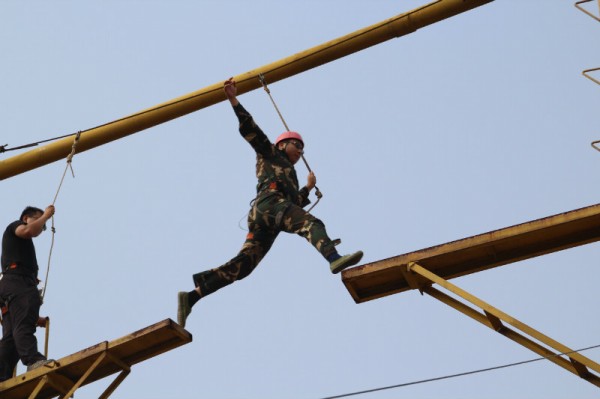 在短暫而又緊湊的兩天里,主要進(jìn)行了七個項目的訓(xùn)練,“破冰”、“天梯”、“高空斷橋”、“信任背摔”、“七巧板”、“圣塔”和“畢業(yè)墻”。整個訓(xùn)練的過程中,大家熱情高漲,積極參與,不管是令人膽戰(zhàn)心驚的天梯、高空斷橋,還是讓人感動不已的信任背摔、畢業(yè)墻,都讓大家在思想上、認(rèn)識上和行動上有了不同程度的體會、磨練和收獲。